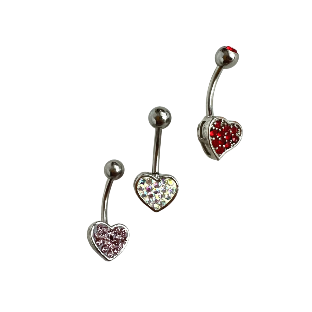 316L Surgical steel banana with heart shaped tiffany ball. These belly rings aren't silicone coated,...