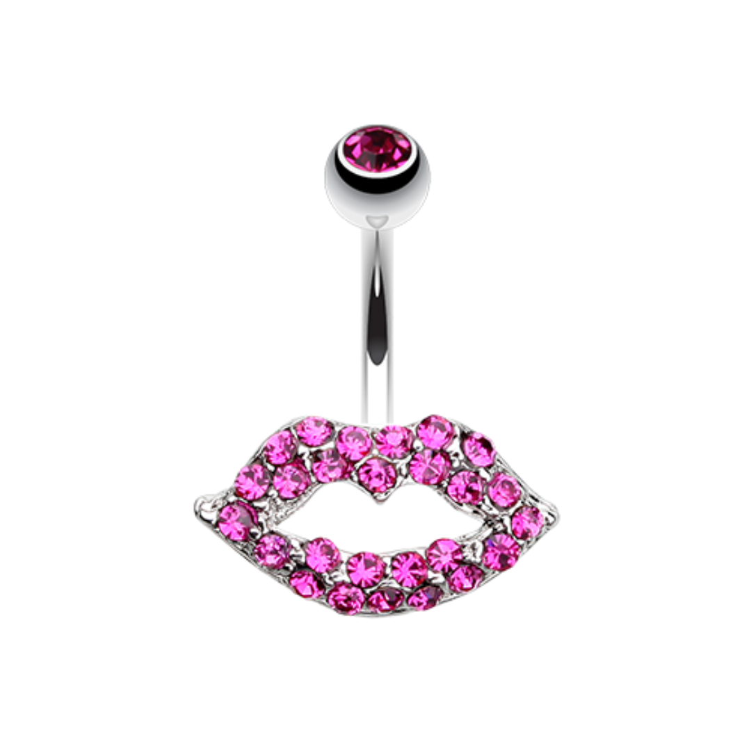 316L Surgical steel belly ring with jewelled lips. Externally Threaded. 14 Gauge X 10mm Sold by...