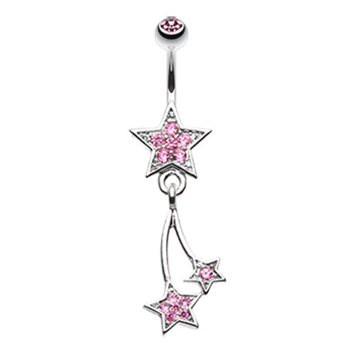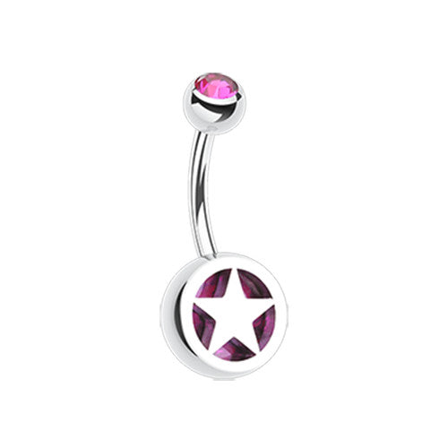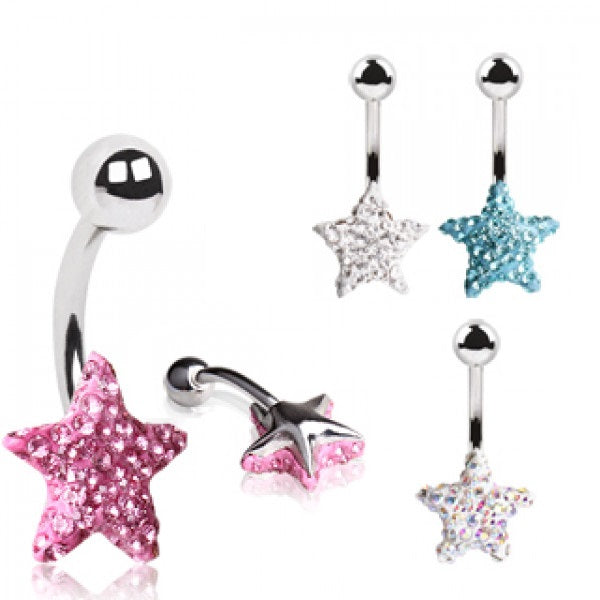 316L Surgical steel belly ring with dangly star and gems. Externally Threaded. 14 Gauge X...