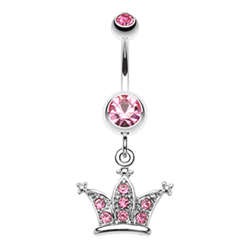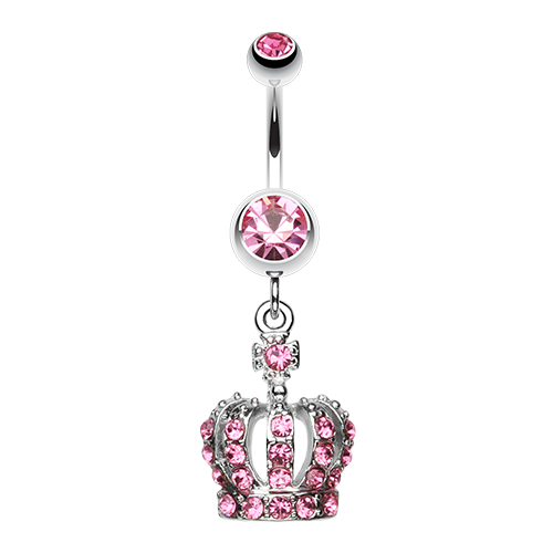 316L Surgical steel belly ring with dangly crown. Externally Threaded. 14 Gauge X 10mm X 5&8mm...