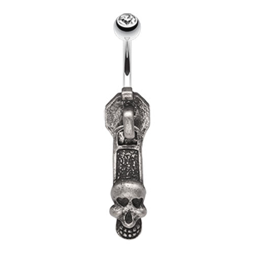 316L Surgical steel belly ring with antique-looking skull zipper. 14 Gauge X 10mm Externally Threaded....