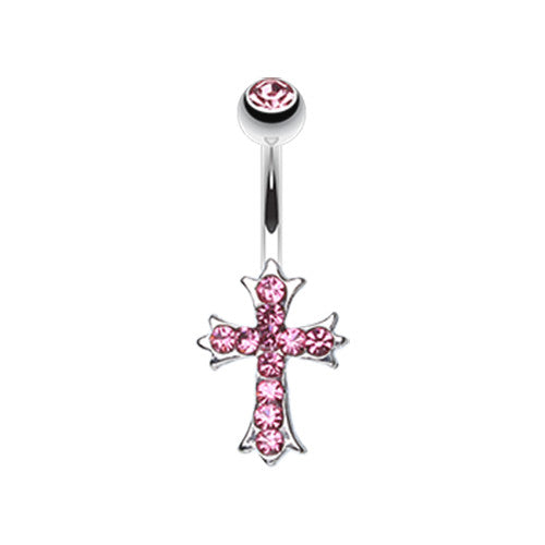 316L Surgical steel belly ring with jewelled cross design. Externally Threaded. 14 Gauge X 10mm...