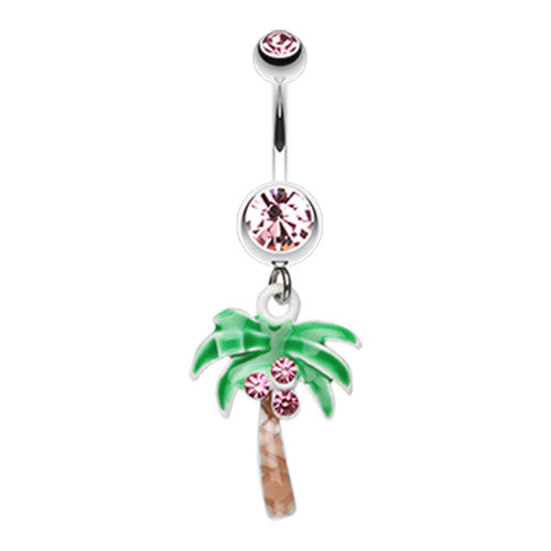 316L Surgical steel belly ring with a tropical palm tree - perfect for the beach! Externally...