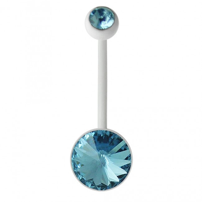 Belly Ring - Long Bio Banana With Large Crystal Gem