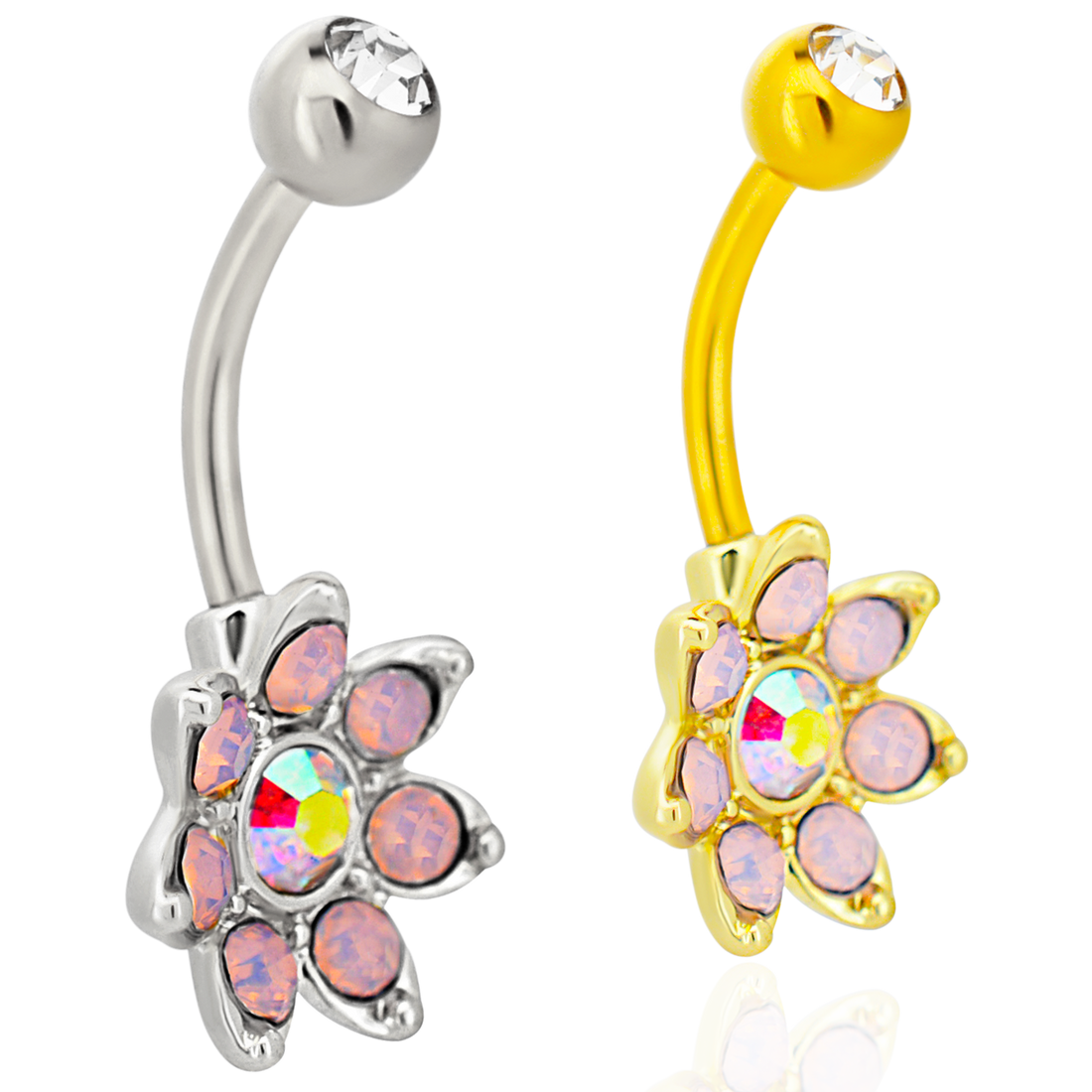 316L surgical steel belly ring with a really pretty flower with pink and ab gems. ...