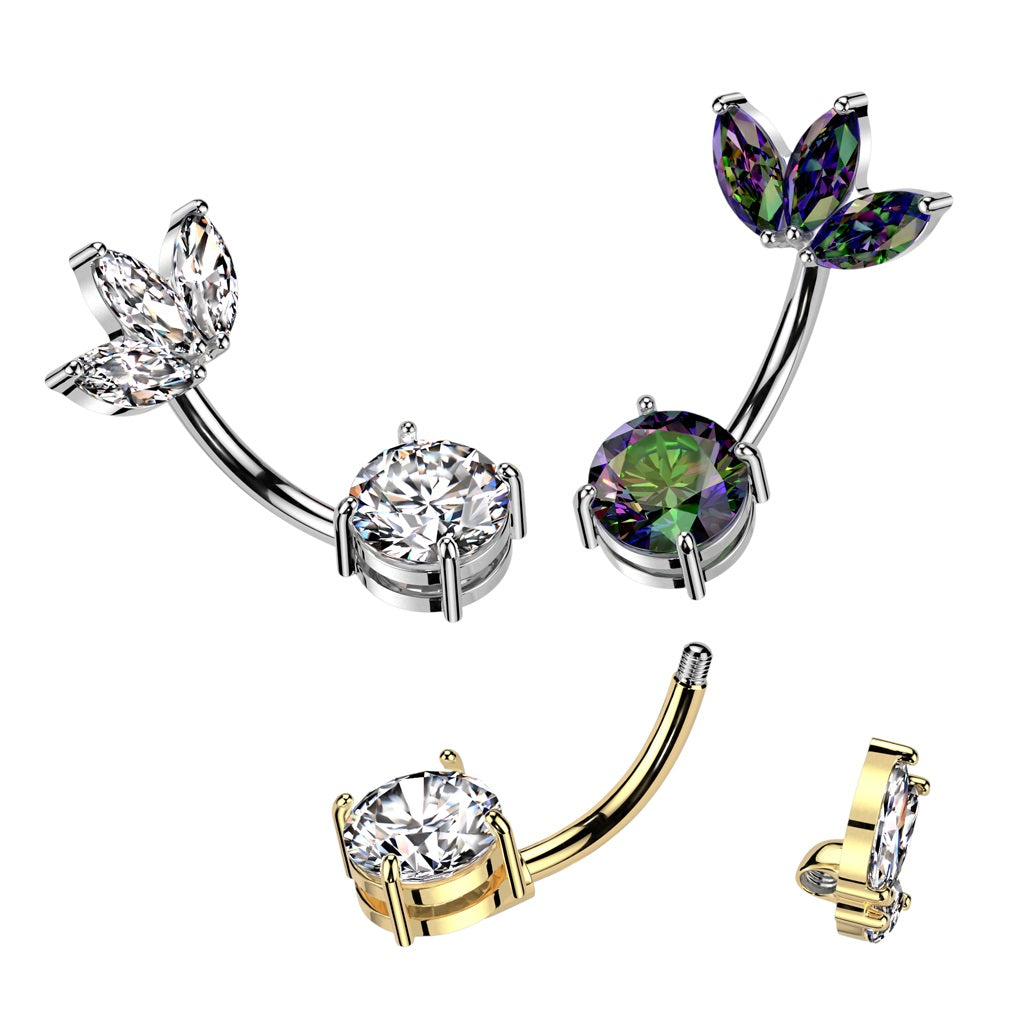 Belly Ring - TITANIUM - Threadless 5 Marquise Gems