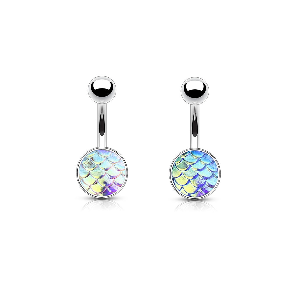 316L Surgical steel belly banana with irridescent fish scale design. Colour #1 is light, similar...