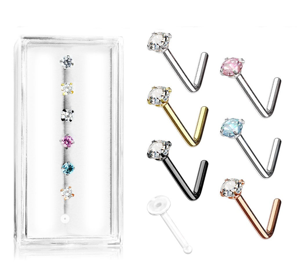 316L Surgical steel L-Bend nose studs in acrylic display box. 20 Gauge X 6mm with...