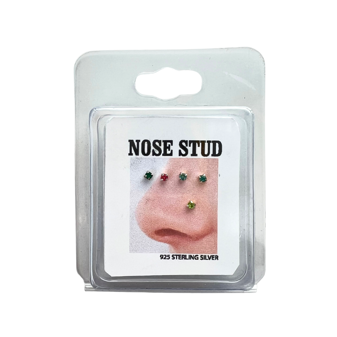Sterling silver nose studs with prong-set 2mm CZ gem. 52 pieces in a box, available...