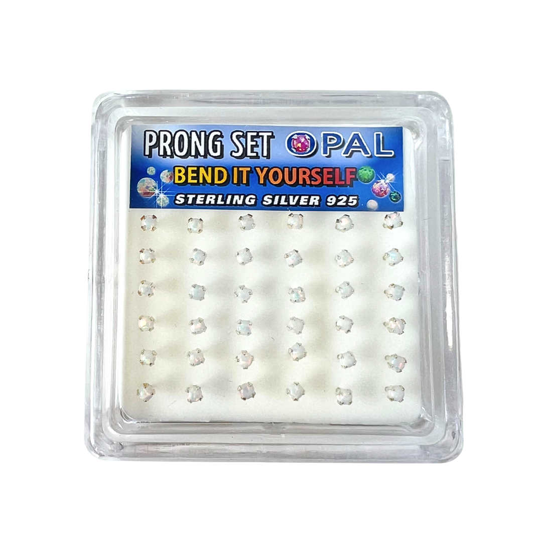 Sterling silver nose studs with synthetic glitter opal. 36 pieces in box, available in nose...