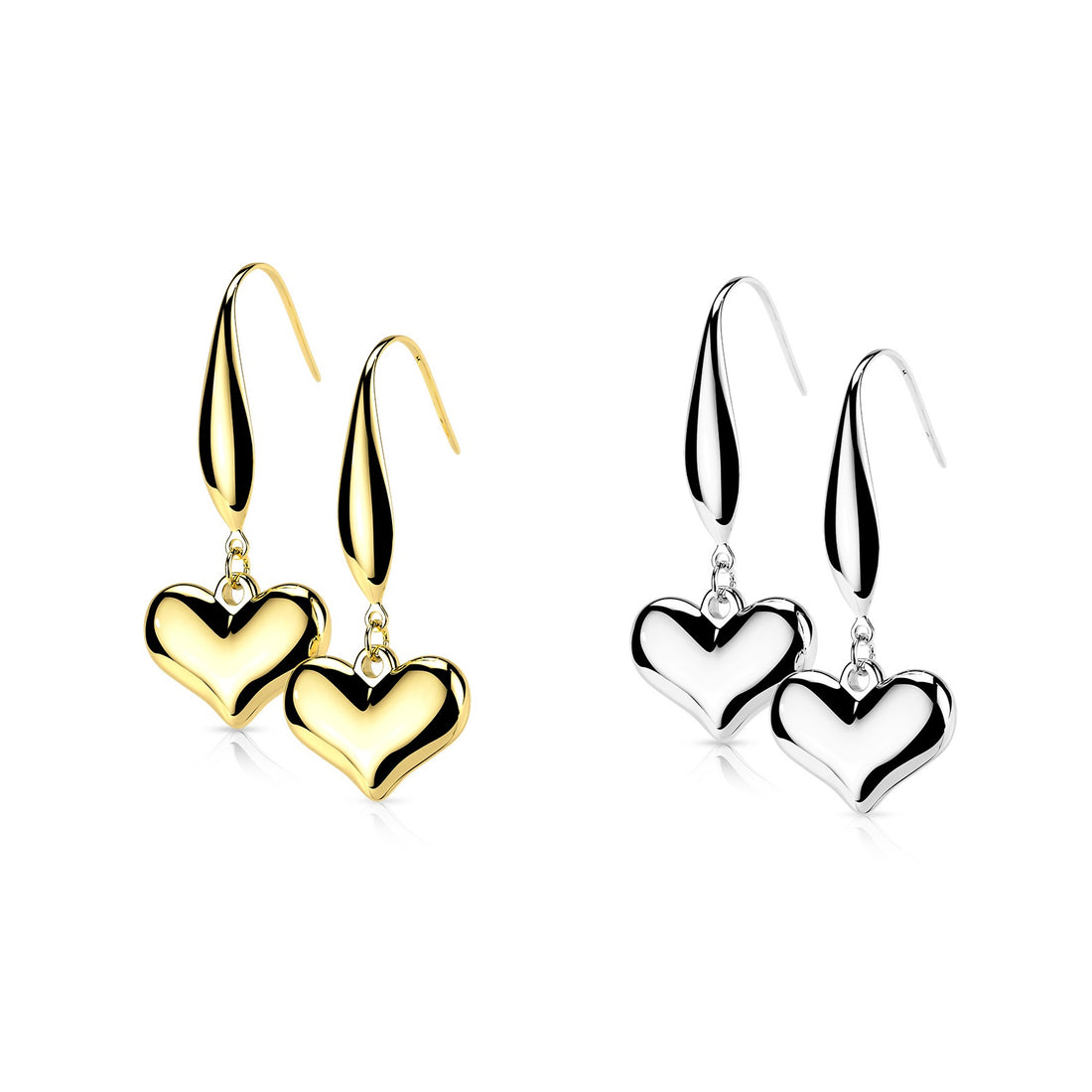 Stainless steel earrings with dangling heart shape. Earrings are hook-design. 20 Gauge 316L Surgical Steel ...