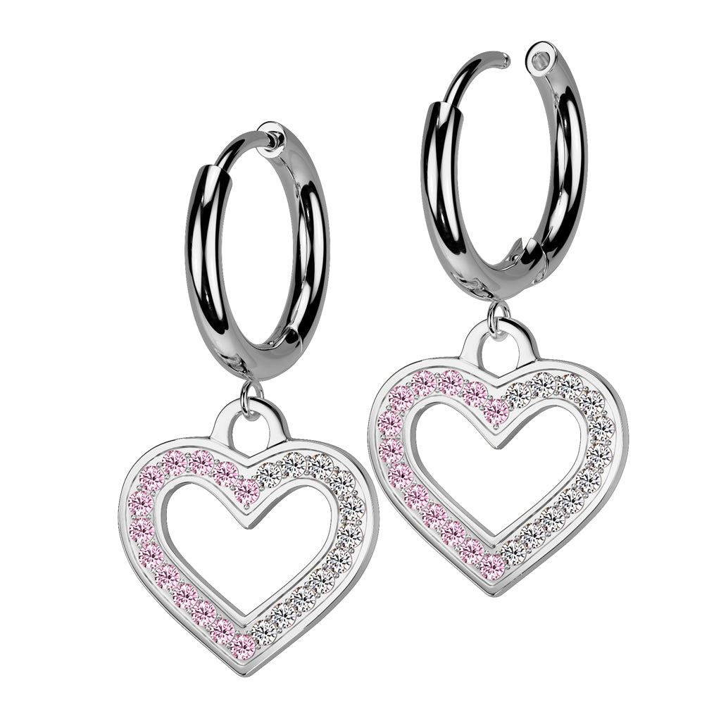 These hoop earrings are 316L surgical steel with a dangly cut-out heart with clear and...