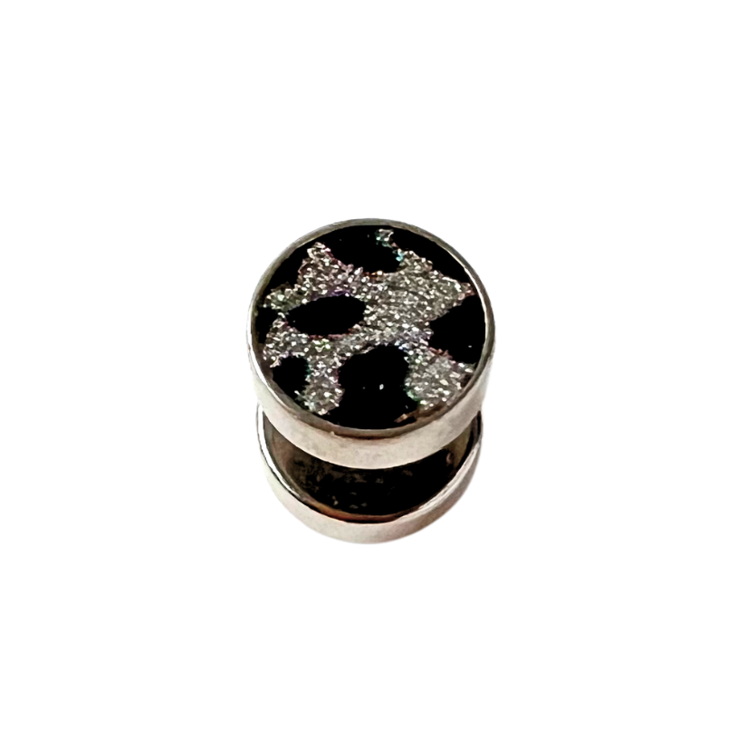 316L Surgical steel fake plugs with sandpaper leopard design. Externally Threaded. 16 Gauge X 6mm...