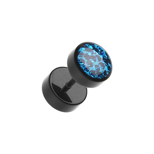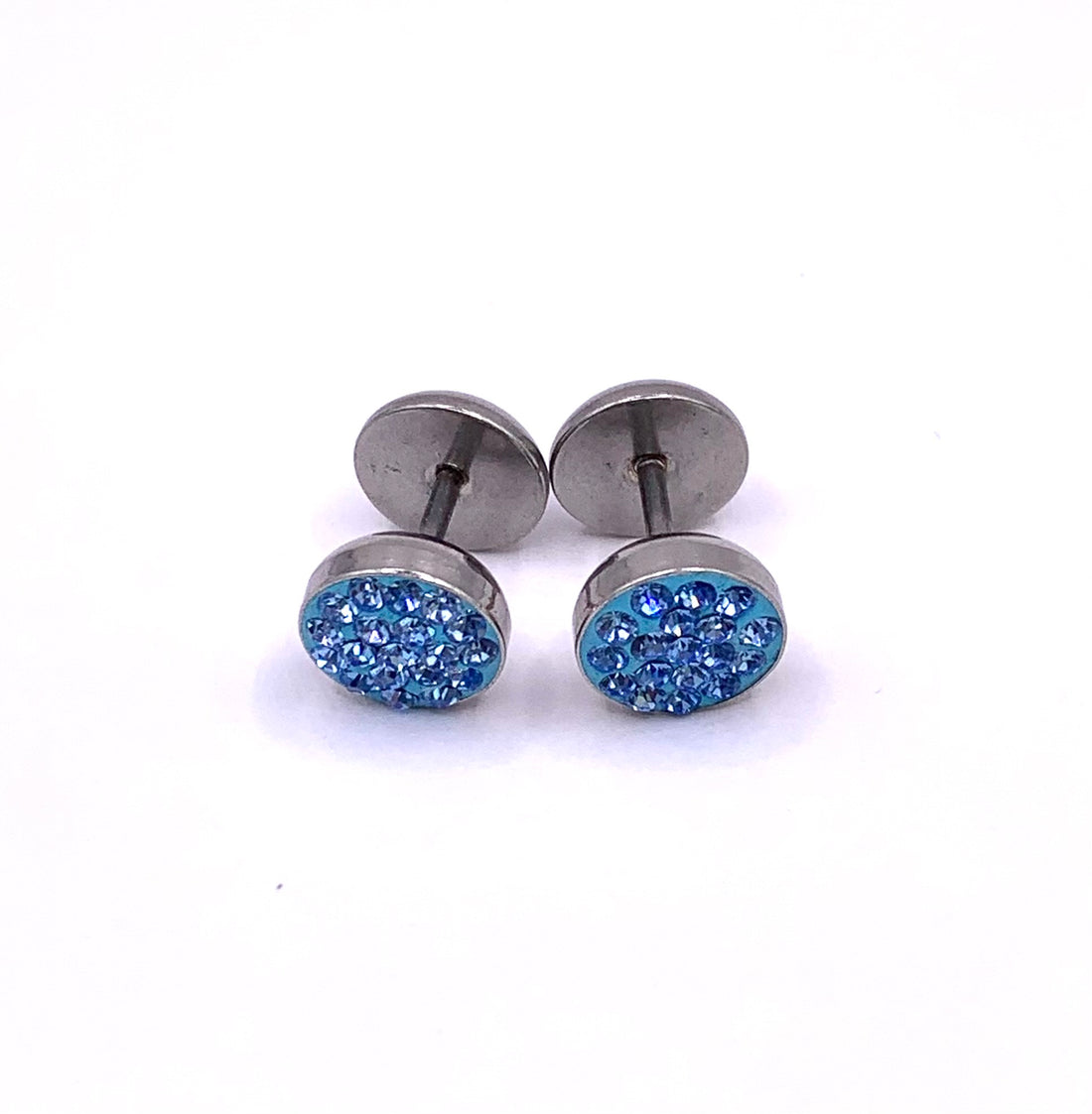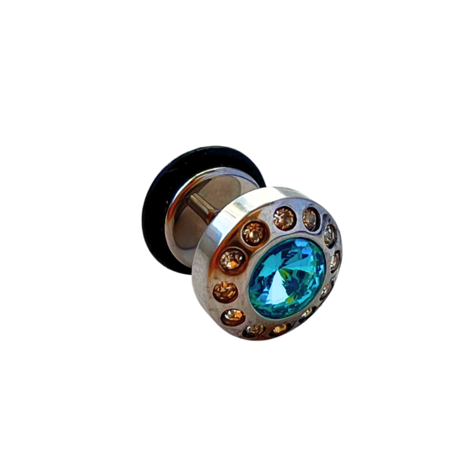 316L Surgical steel fake plugs with light blue and clear cubic zirconia gems. Externally Threaded....