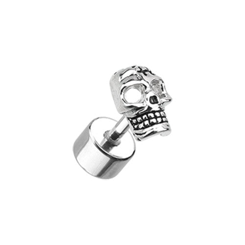 Fake plugs with skulls in surgical steel or blackline. Externally Threaded. 16 Gauge X 6mm...