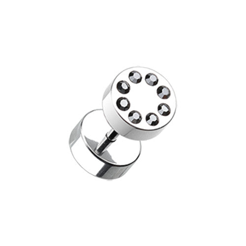316L Surgical steel fake plugs with circle of cz gems. Externally Threaded. 16 Gauge X 6mm...