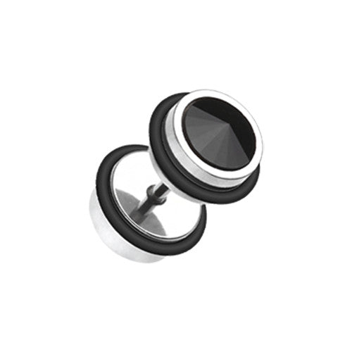 316L Surgical steel fake plugs with one gem. Externally Threaded. 16 Gauge X 6mm X 6mm...