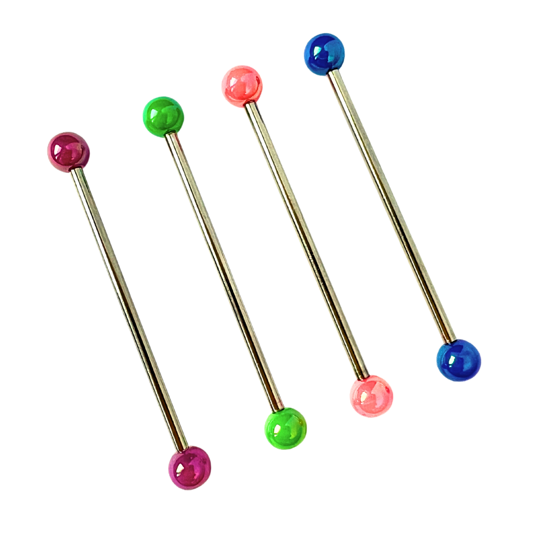 Long barbells for the top of the ear. Industrial barbells come in a variety of plain barbells and fancy designs.