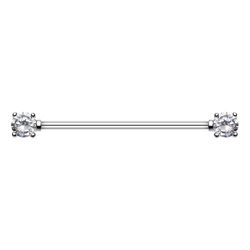Industrial barbell with clear marquise-shaped cubic zirconia in a vine pattern. Externally Threaded. 14 Gauge...