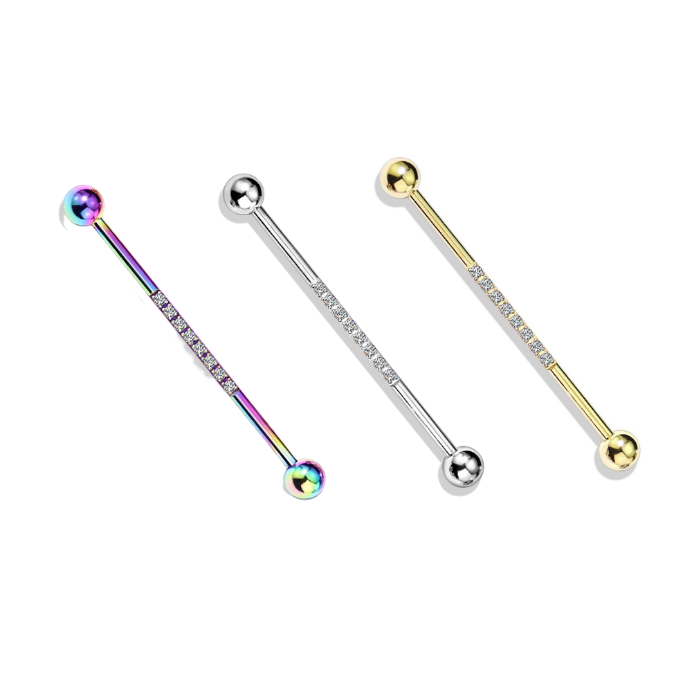 316L Surgical steel industrial with CZ gems. Externally Threaded. 14 Gauge X 35mm Sold by...