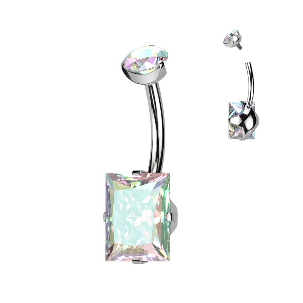 Exciting new belly ring design with beautiful large rectangle. This titanium belly banana has an internally threaded...