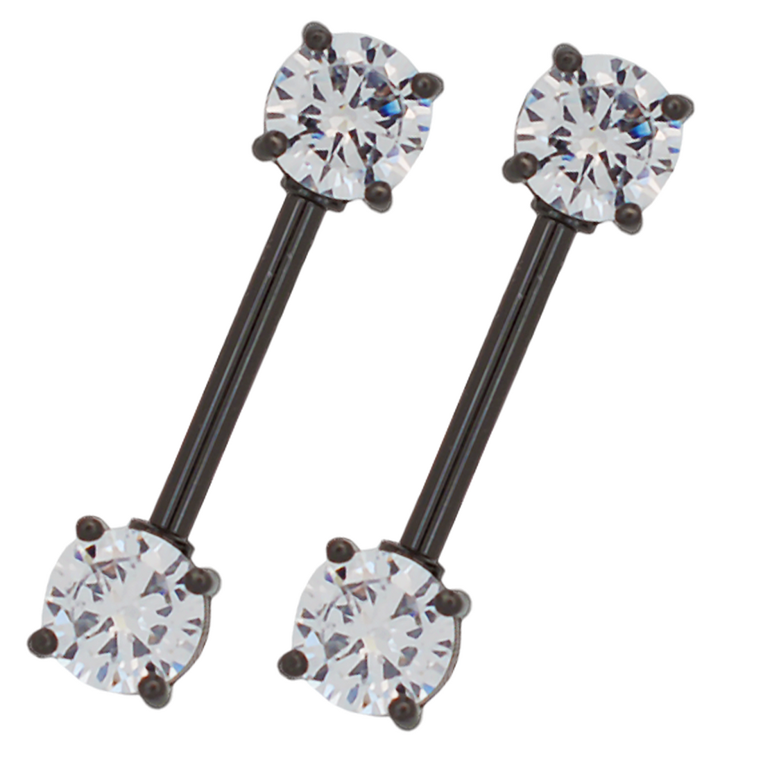 EO Gas pre-sterilized 316L surgical steel nipple barbell with forward-facing clear gems. Externally Threaded. Each piece...