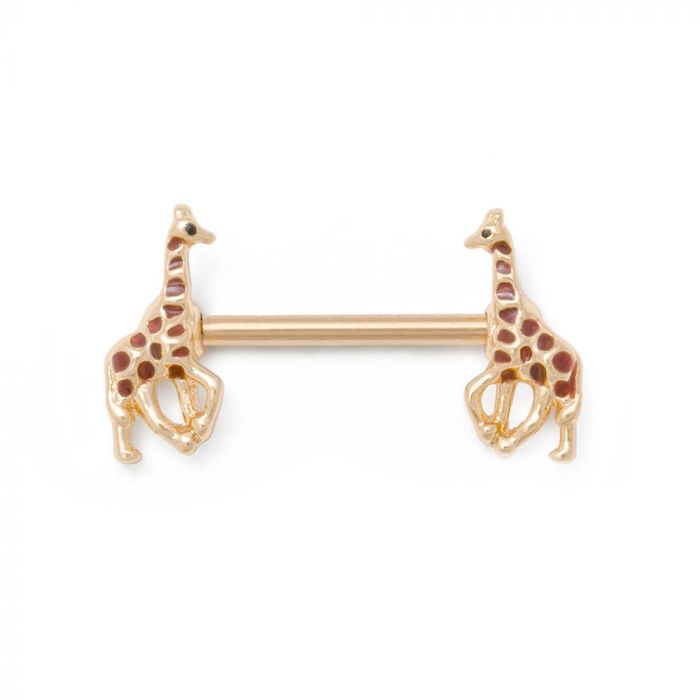 14 gauge 14mm Stainless Steel Nipple Barbell Jewelry with PVD Gold Coating — Brass-Cast Giraffe...