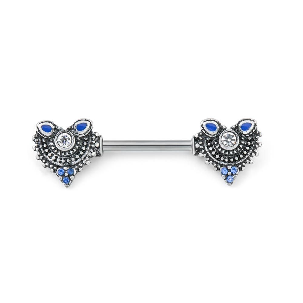 316L Surgical steel nipple barbell with gorgeous cubic zirconia adorned hearts and a swirl flourish. ...