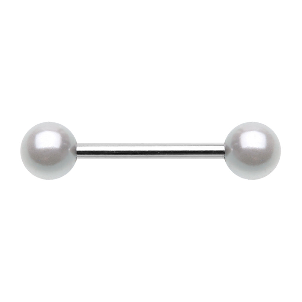 316L Surgical steel nipple barbell with imitation pearl balls. Externally Threaded. 14 Gauge X 16mm X...