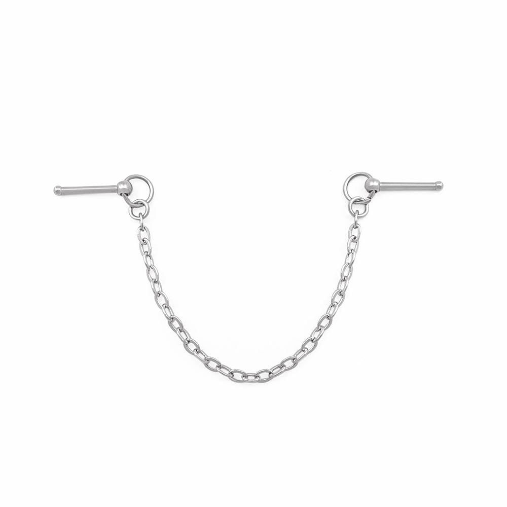 20g Stainless Steel Nostril Jewelry — Nose Bone Ball Studs with Rhodium-Plated Brass Chain This...