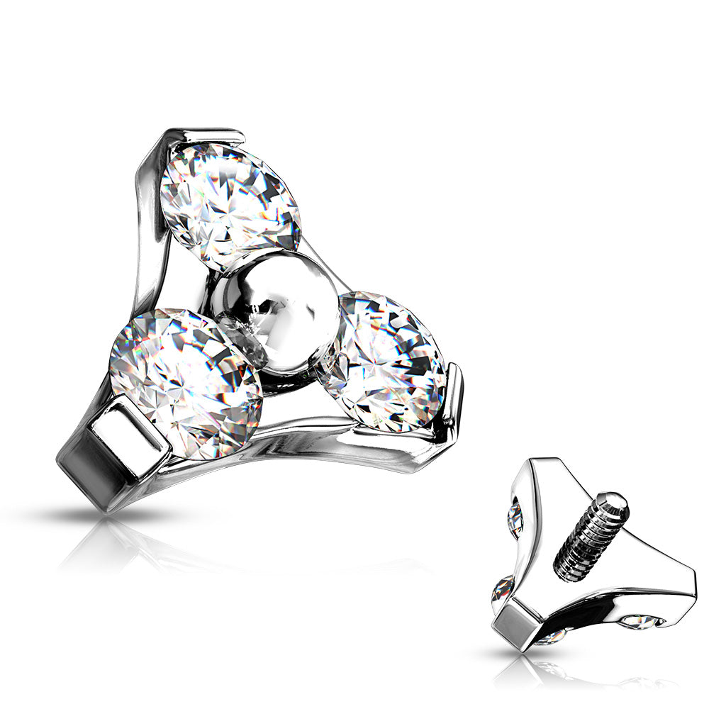 3-gem trinity triangles for internally threaded jewellery. The 14 gauge ones can be used for dermal anchors....