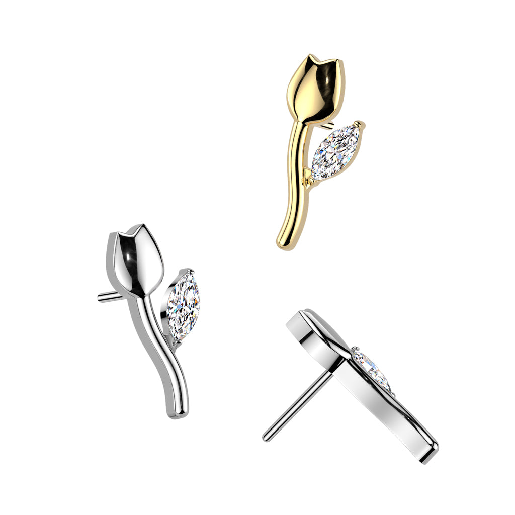 Threadless top with single marquise gem on tulip design. These threadless ends just push...