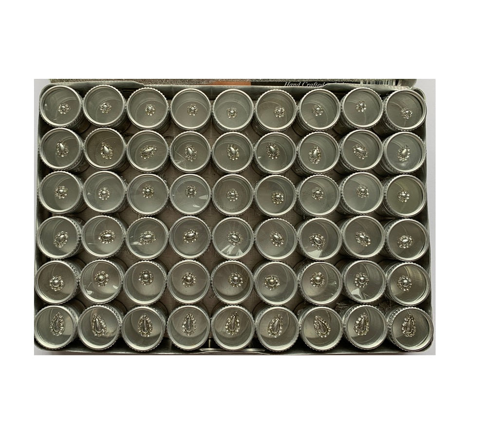 Set of 54 jars with small stick-on gem tattoos in assorted shapes with clear gems....