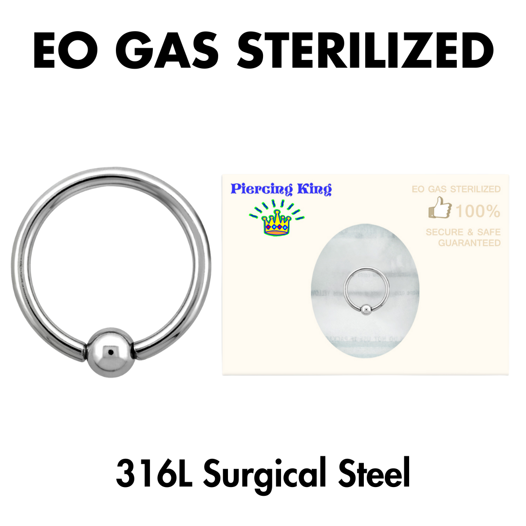 EO Gas pre-sterilized 316L surgical steel circular barbell. Externally Threaded. Each piece is individually wrapped, and...