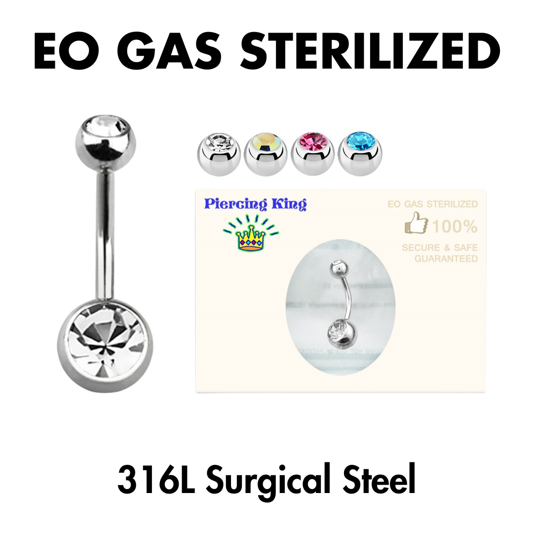 EO Gas pre-sterilized 316L surgical steel double jewel belly banana. Externally Threaded. Each piece is individually...