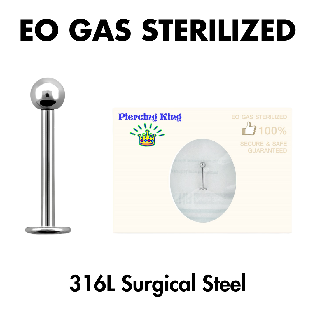 EO Gas pre-sterilized 316L surgical steel labret. Externally Threaded. Each piece is individually wrapped, and labelled...