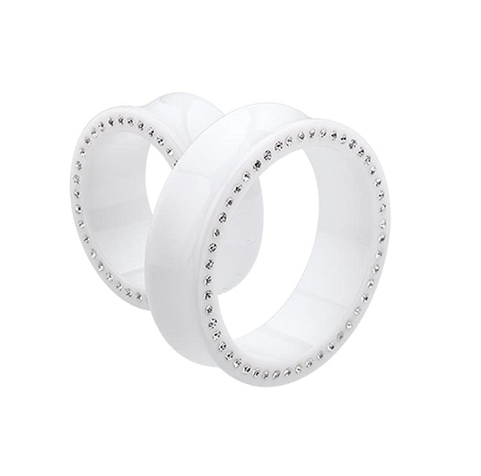 Tunnels / Plugs Pairs - Supersize White Acrylic With Jewels