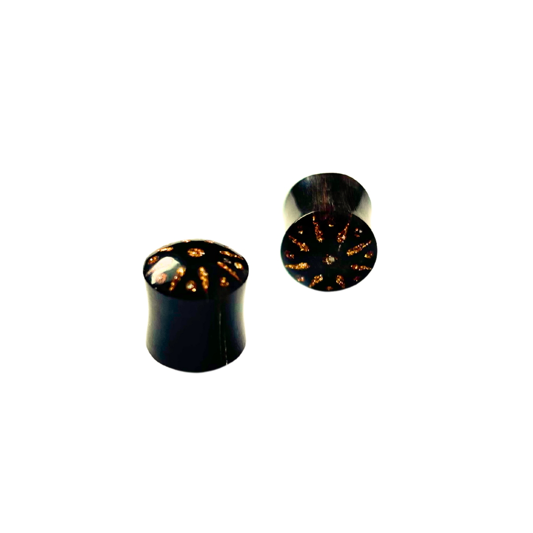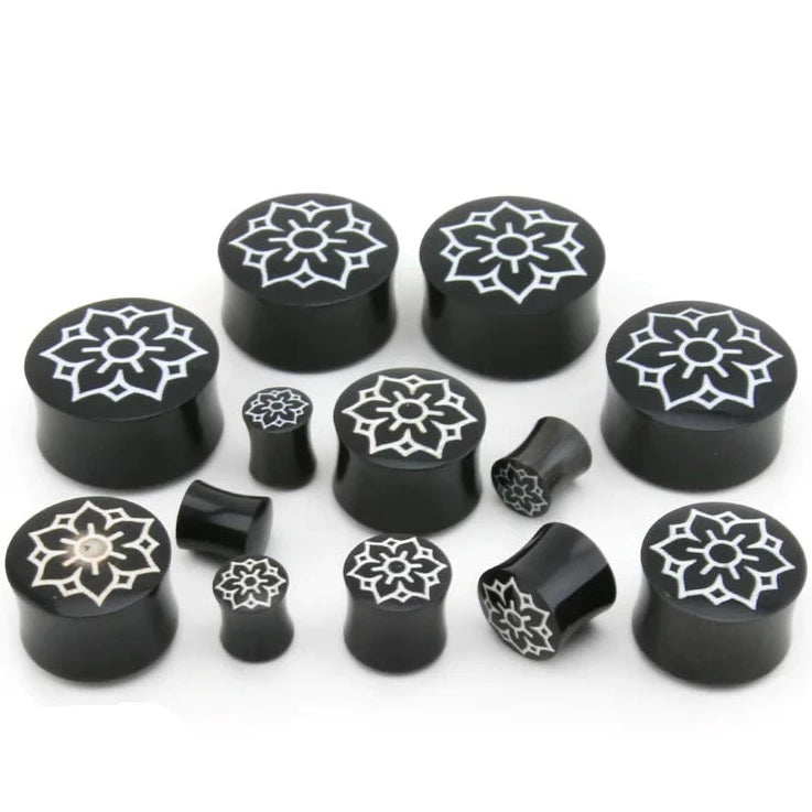Double flare horn plugs with sparkling inlaid flower design. Sold by the pair. Price shown...