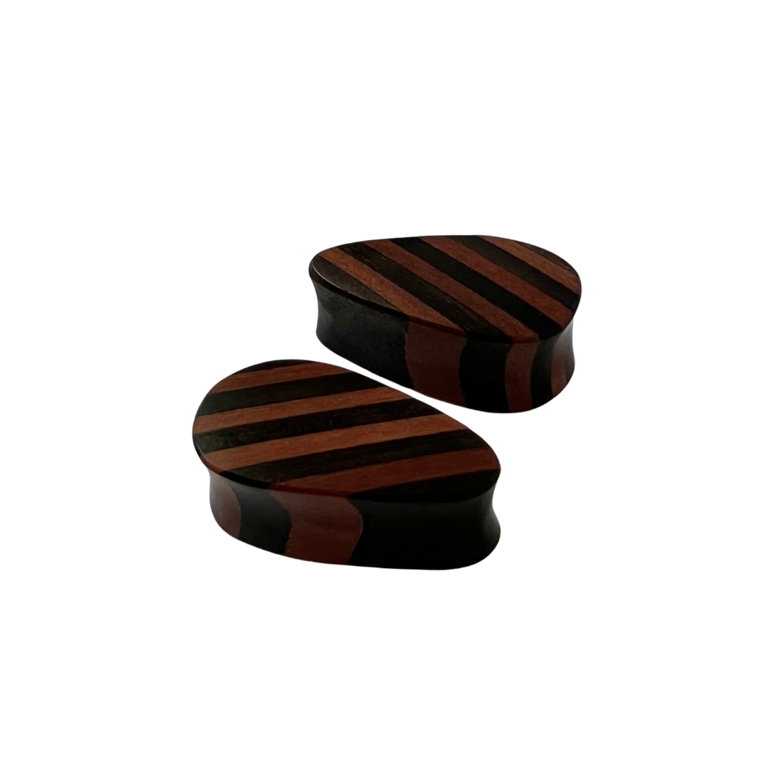 Last Chance Packs - Organics Pairs - Striped Wood Teardrop Plug