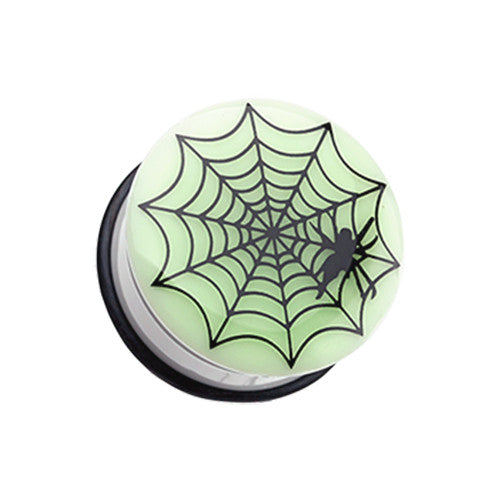 Acrylic single flare plugs with glow in the dark spiderweb design. Sold in a bundle...