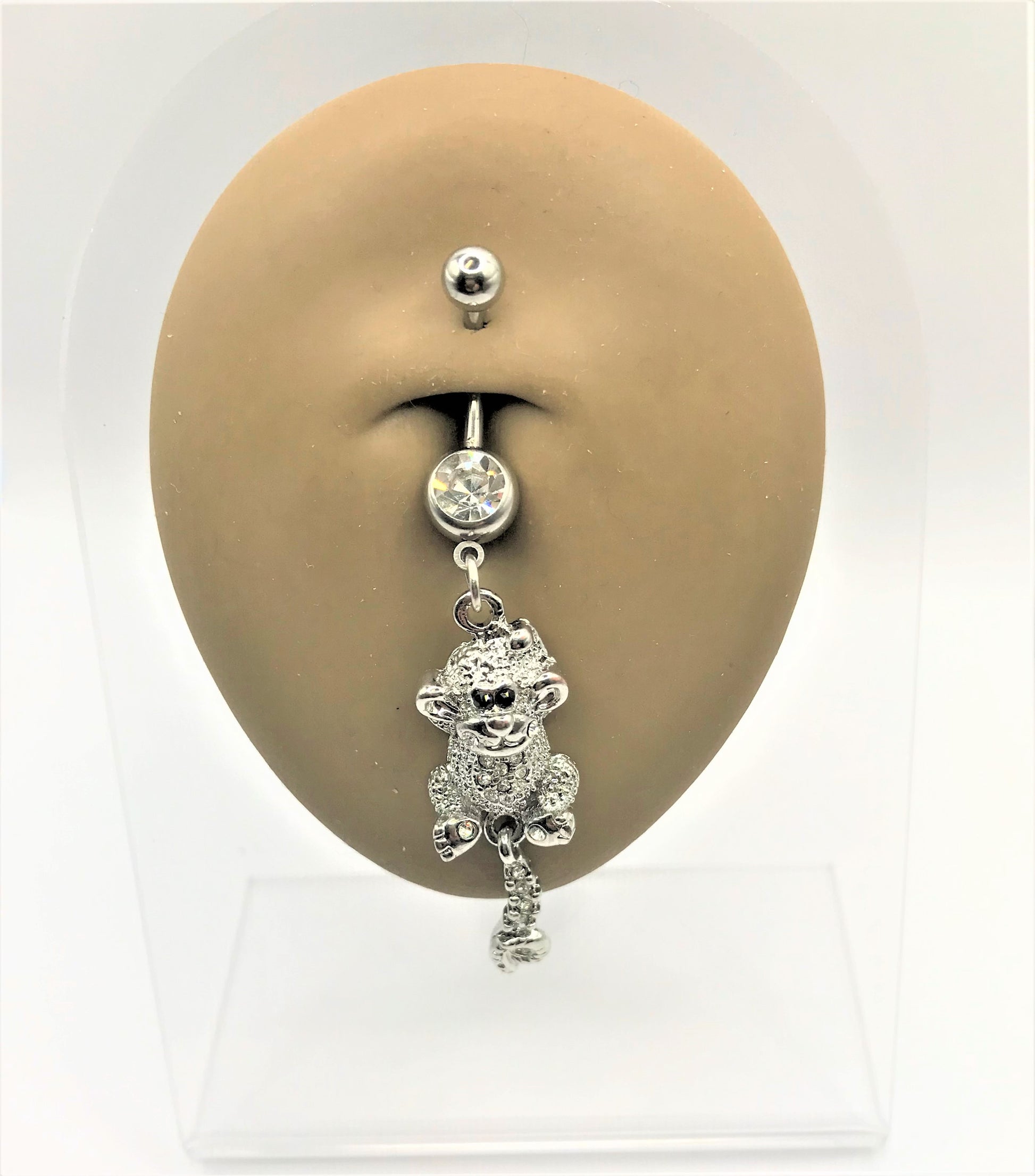 Rachael's favourite belly ring!  316L Surgical steel belly ring with dangly jewelled monkey (and his tail swings!).  Externally Threaded.