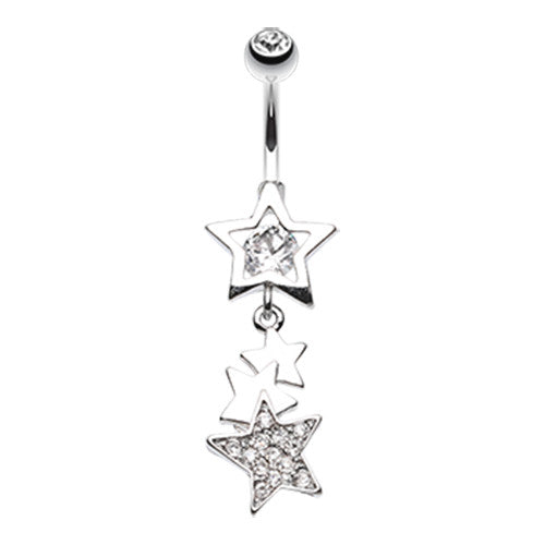 316L Surgical steel belly ring with stars.  Externally Threaded.
