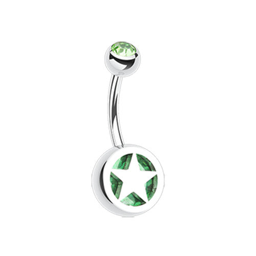 316L Surgical steel belly banana with star design inside the bottom ball.  Externally Threaded.