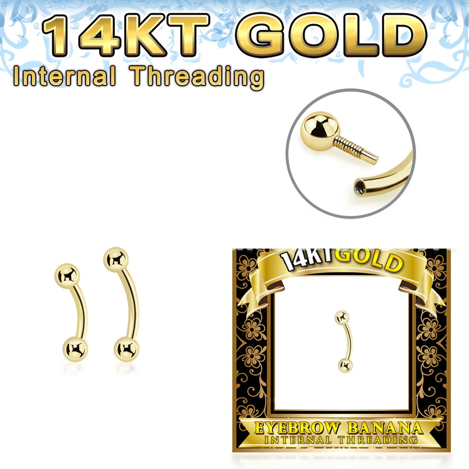 14 Karat gold curved barbell with internally threaded balls - perfect jewellery for eyebrow, vertical lip, daith, rook, and more.