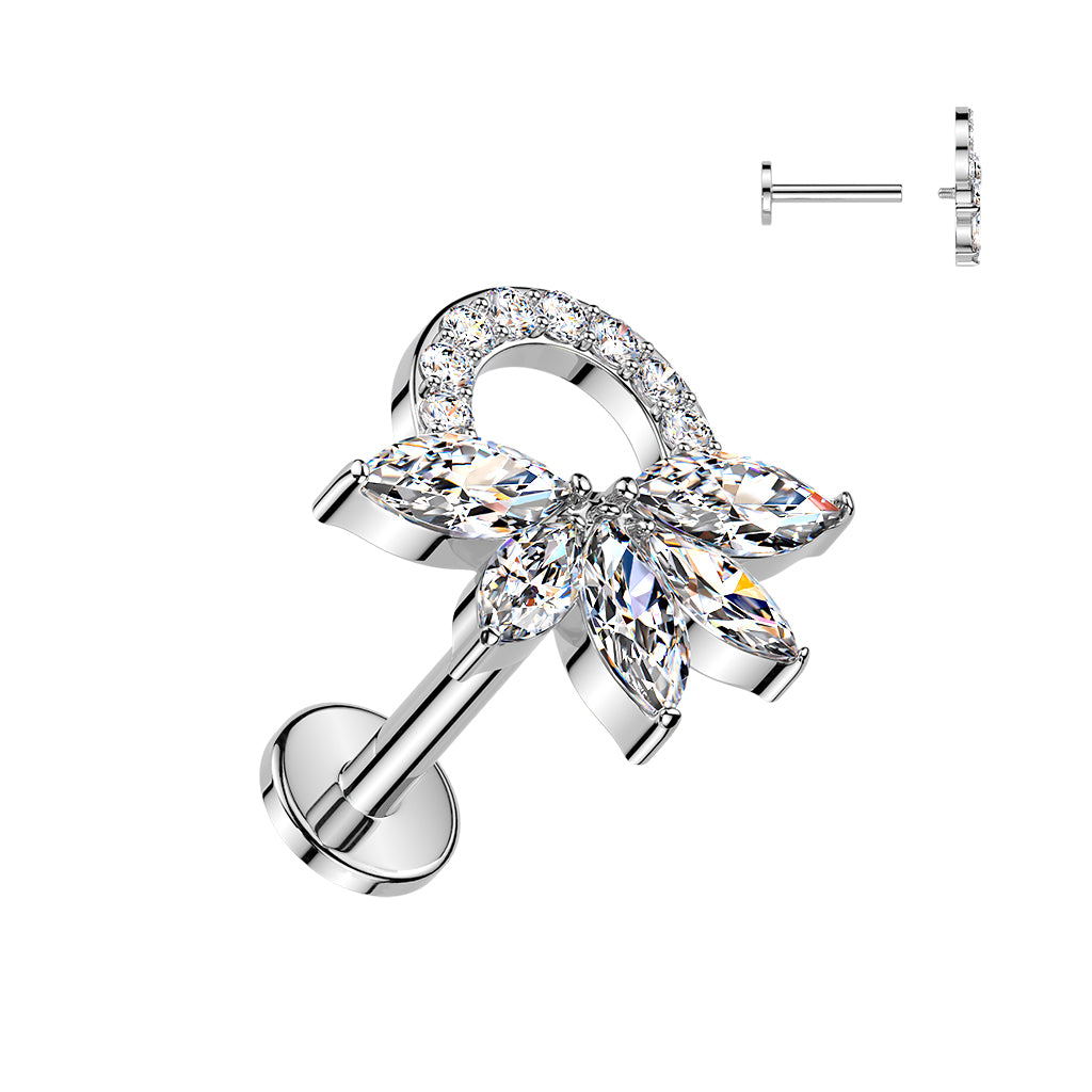 Internally threaded 316L Surgical steel labret with a gorgeous set of cubic zirconia in a fan pattern with a jewelled circle. These labrets have a 4mm base.