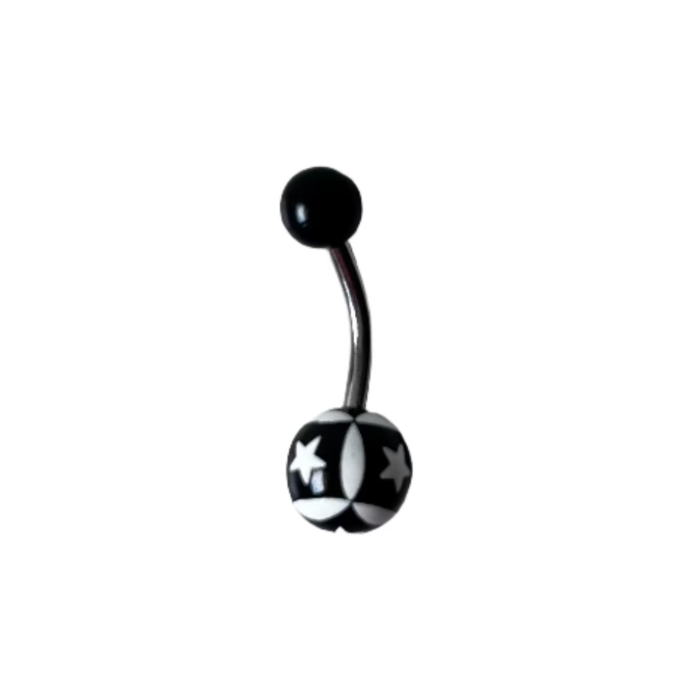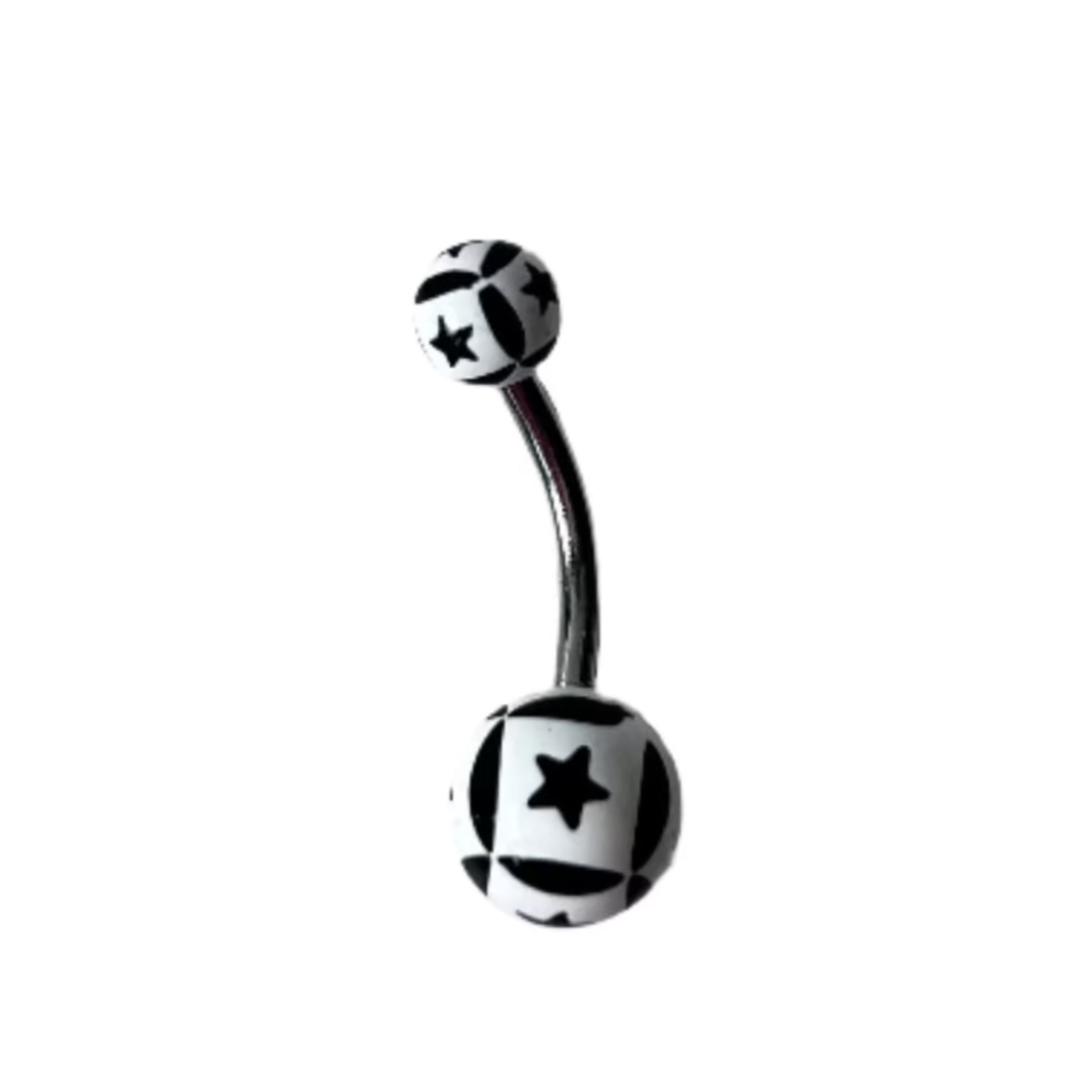 316L Surgical steel belly banana with acrylic balls with star and square design.