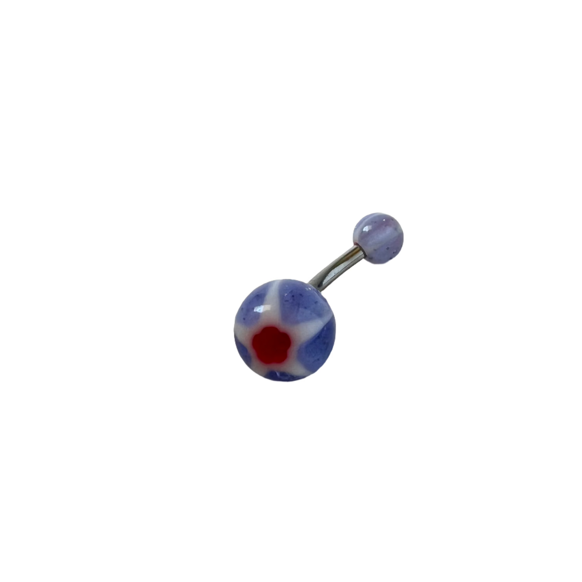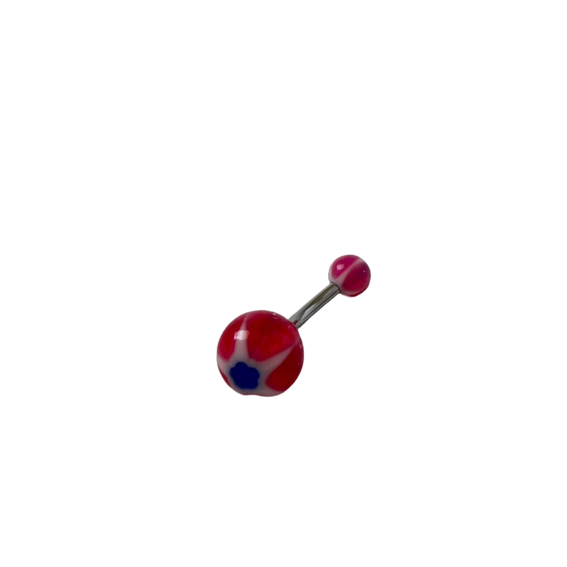 316L Surgical steel belly banana with acrylic balls with colourful starburst design.