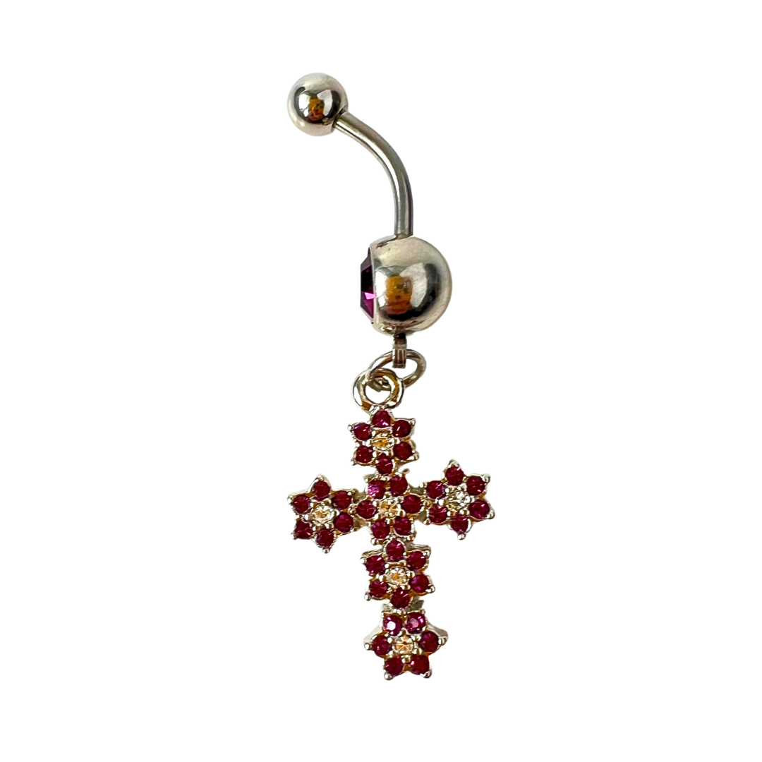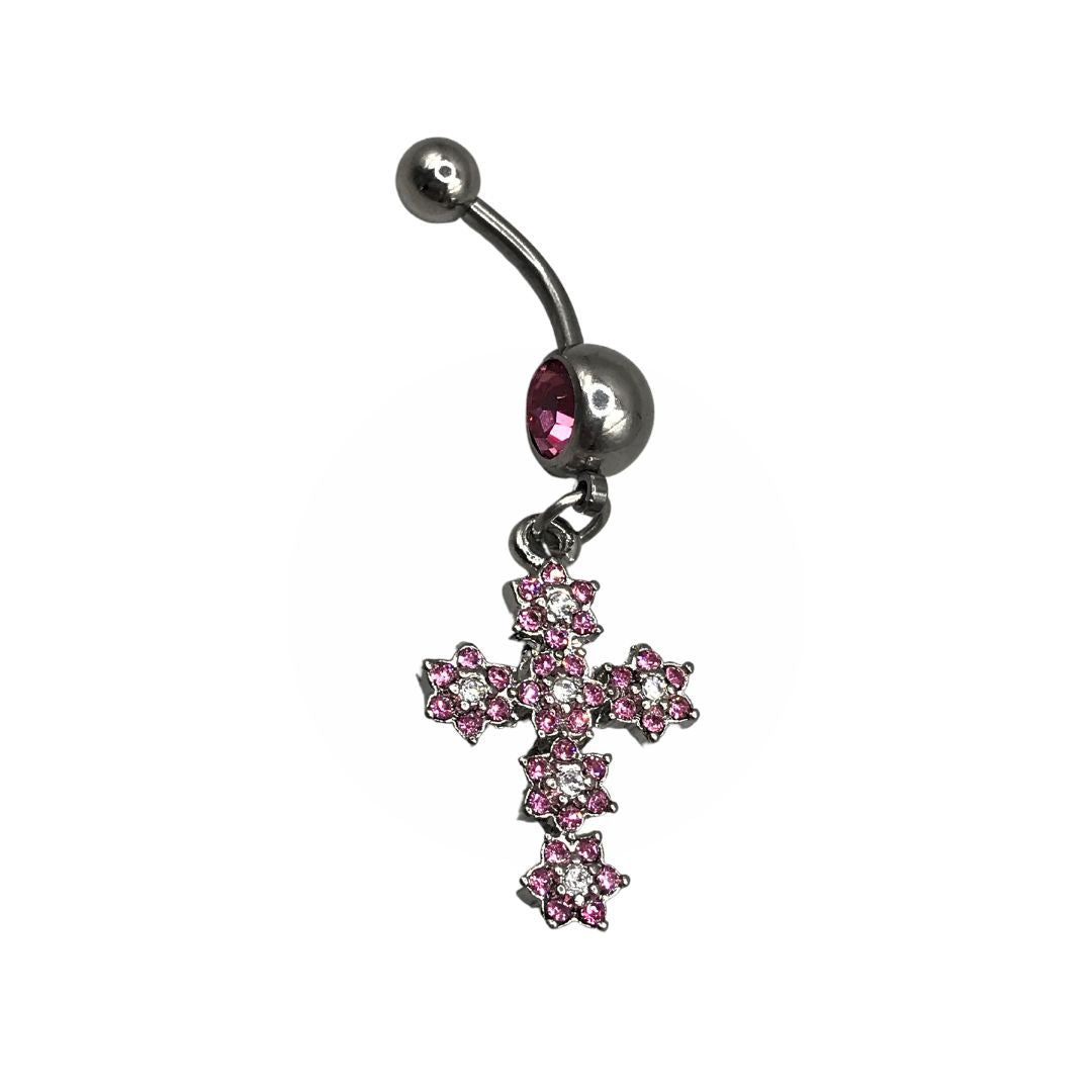 316L Surgical steel belly ring with jewelled cross design.  Externally Threaded.