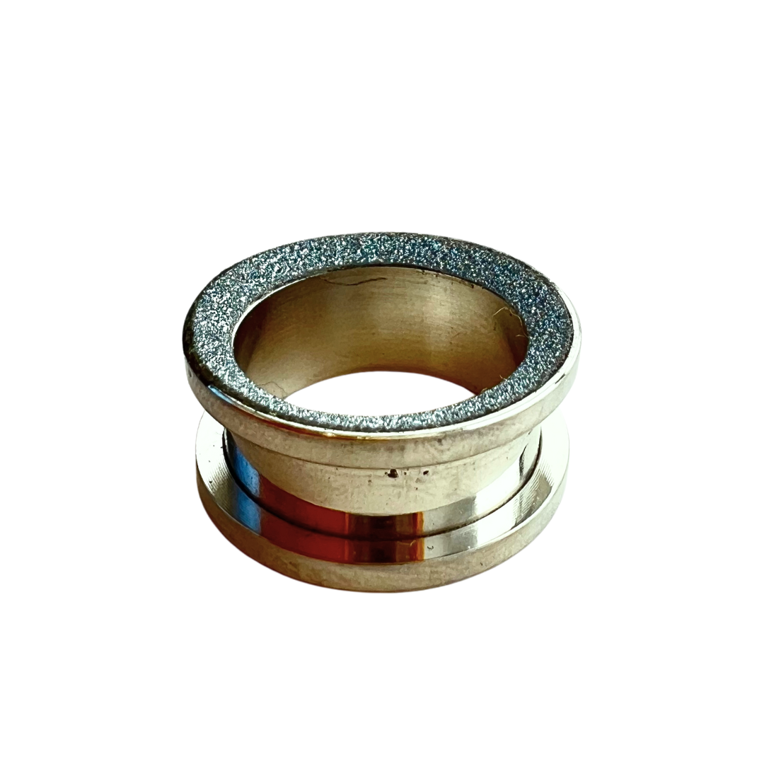 316L Surgical steel machine head tunnels with glittery sandpaper design.