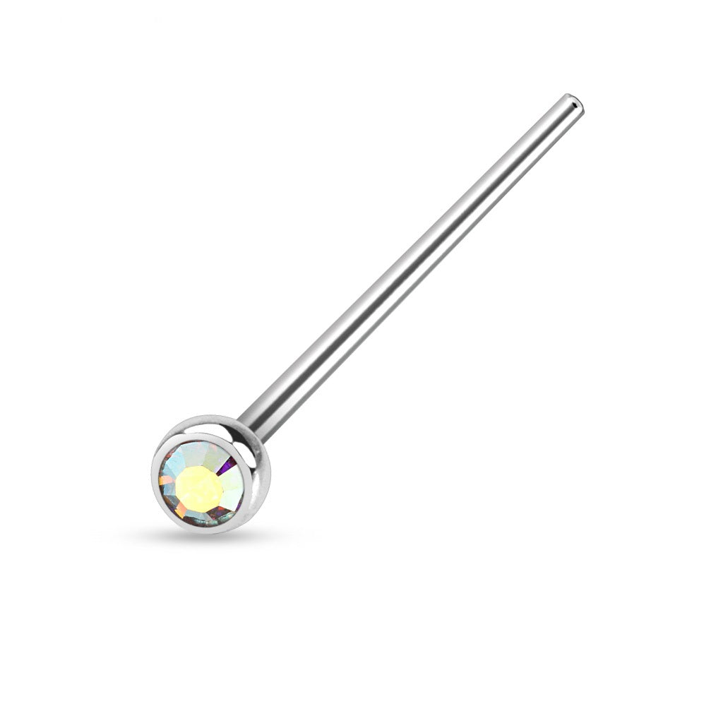 316L Surgical steel straight fish tail with press-set gem.  Bend these yourself (with needle-nose pliers) for nose studs or labrets.